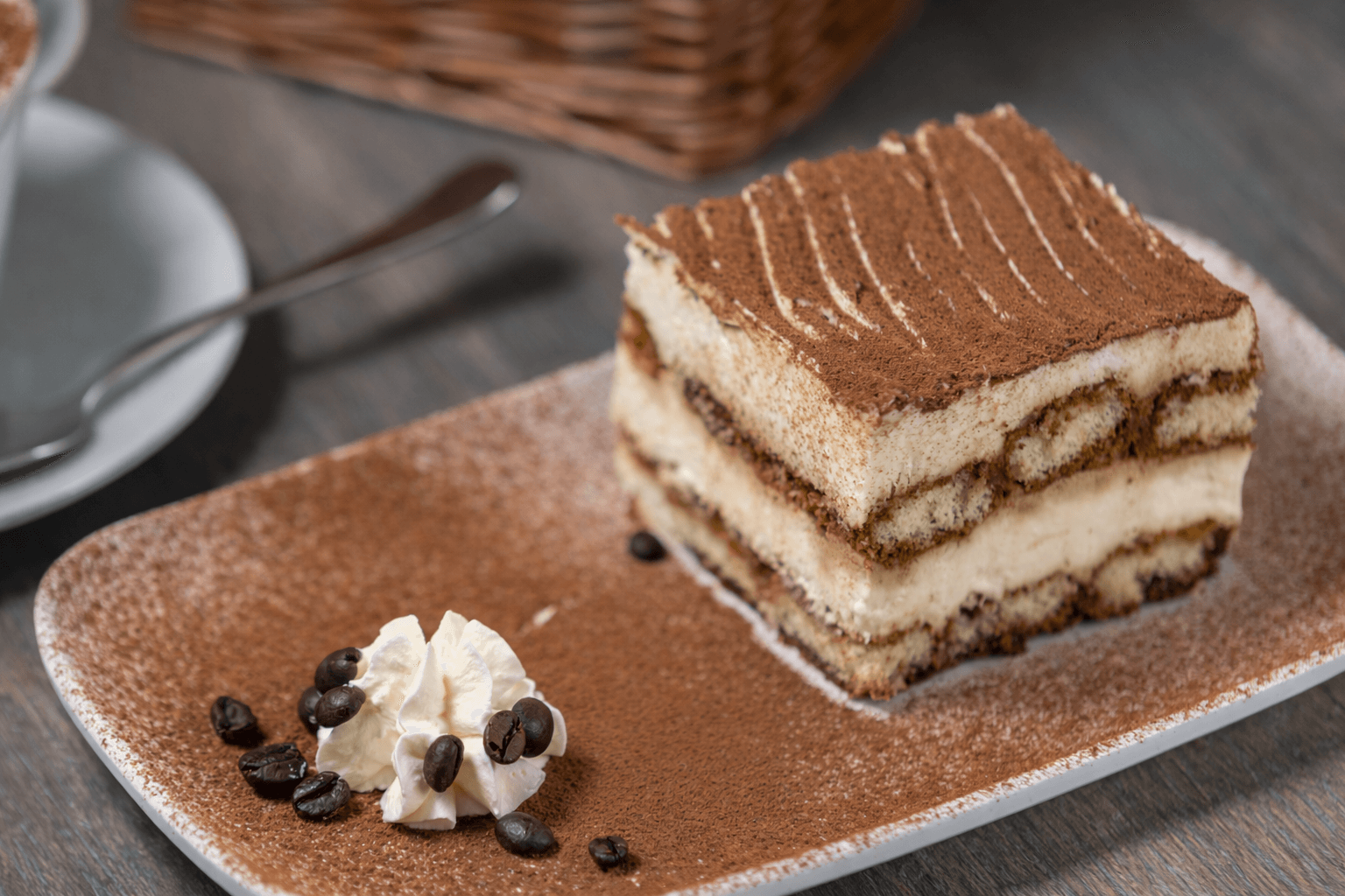 The Italian icon, handmade with love: espresso-soaked ladyfingers, silky mascarpone cream, and a dusting of cocoa.